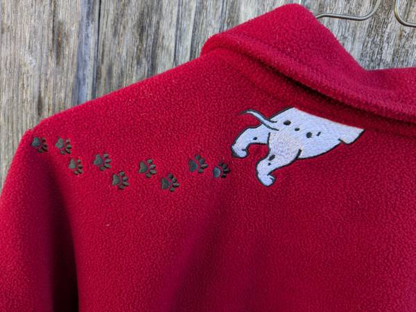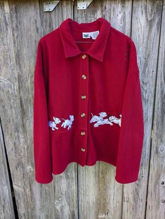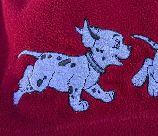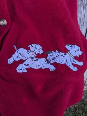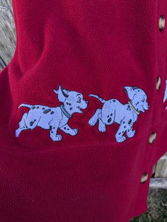 Gently used women's 101 Dalmatians button-down fleece jacket. Vintage, discontinued embroidered jacket by The Disney Catalog: