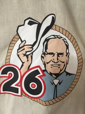 The size is 2XL (XXL). It has the Angels logo on the front. A caricature of Gene Autry on the inside of the back. The style is a varsity type.