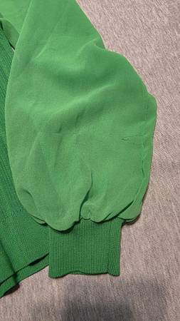 Please see pics for flaw, some pull string on the sleeves. Size PS