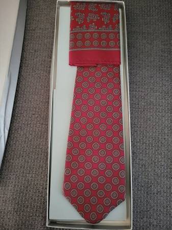 Vintage Oscar De La Renta Men's Tie & Handkerchief Set 100% Silk - NWT. Sold by The May Company. New in original packaging. Outer box has some wear.