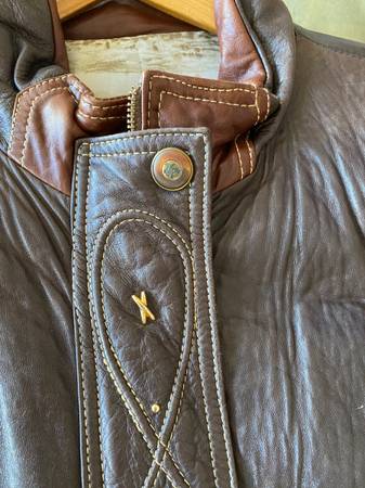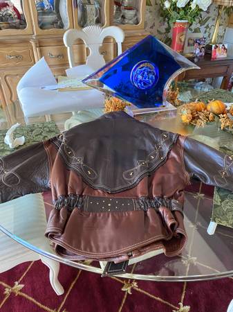 In NEW CONDITION - Stunning Quality Women’s Leather Jacket Bought - Never worn EXCELLENT CONDITION Women’s Size Medium Two toned brown with gold Tiffany X Studs Belted Cash only LOCAL BUYER $100