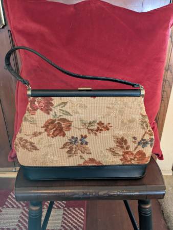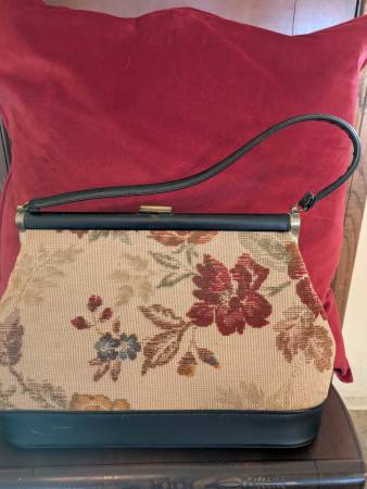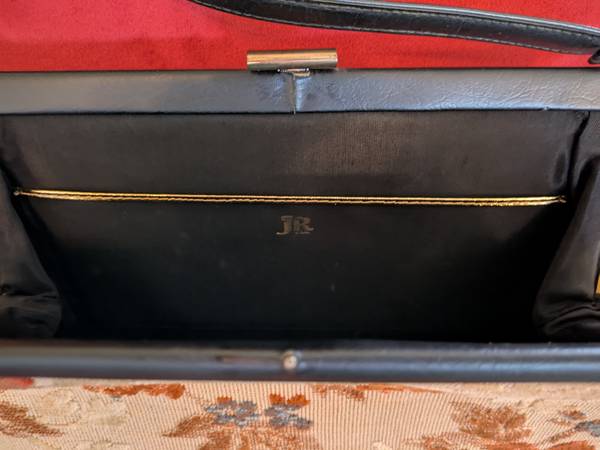 This is a vintage JR or Julius Resnick tapestry Purse in excellent condition. It was my mom's and it doesn't appear to have been used much, if at all. There are faint minor marks at the bottom as seen in the photo.