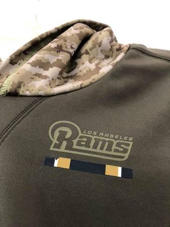 Los Angeles Rams "Salute to Service" Nike Dri-Fit pullover in size L. This is a Youth size pullover. It's in excellent clean condition and comes from a smoke free house. Price is $50. Reply to this post or text/call show contact info