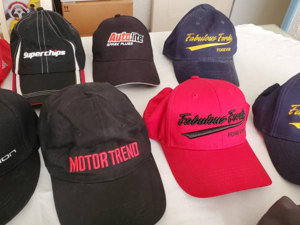 Collection of car related hats / baseball caps. Fabulous Fords Forever, Scion, and others. Some basically brand new, others been sitting for years but I don't recall wearing these. They're just a bit dusty.