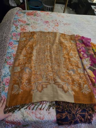 Some pieces are unbranded or have no tags (as shown in photos). Sizes vary—most are larger scarves/wraps.