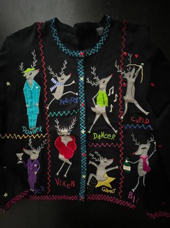 I also have racks and racks of sweaters that prices run from $20 and up. Sweaters in a verity of types Vintage, Custom One of a Kind Funny Beer Holding Sweaters, Adult Humor Sweaters, Cute and Classy Sweaters and lots accessories.