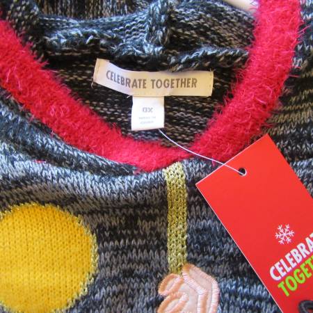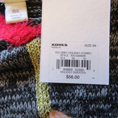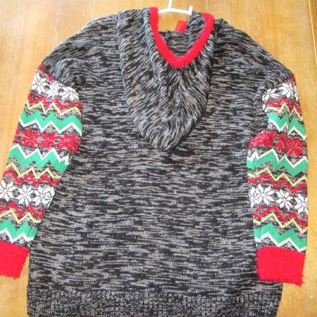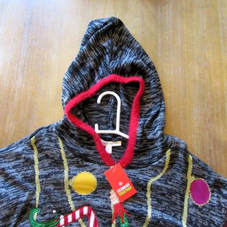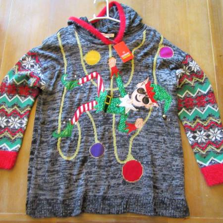 Celebrate together with this women’s hooded Elf log sleeve sweater. Size: OX. Color: Grey. Please see photos to assess the condition yourself. This item is from a smoke free home. Thank You.