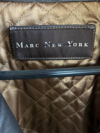 Brown Men's Leather Jacket zipper pockets with soft liner. Consists of four pockets two outside and two inside. Jacket has been repaired due to damage at retail establishment.