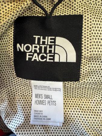 Used, but in good condition. North Face Gore-Tex rain shell jacket. Size men's small. Also have this jacket available in size medium in blue.