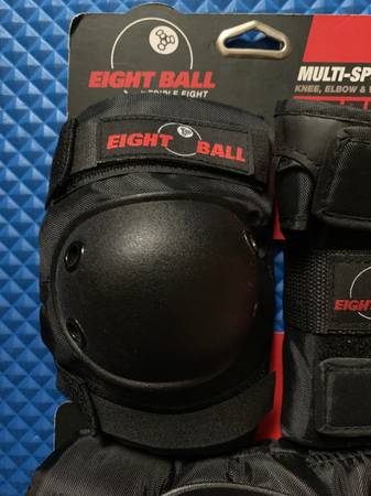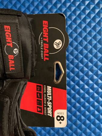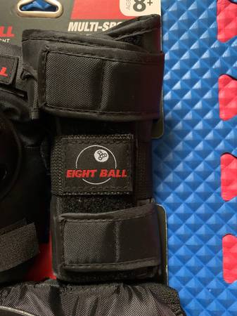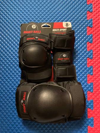 New in original packaging. The set includes knee pads, elbow pads, wrist guards. Size: 8+