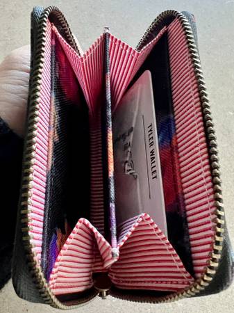Brand new Tyler wallet in watercolor floral pattern, RFID blocking with interior and exterior card slots and ziparound wide access opening. $20