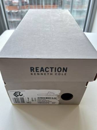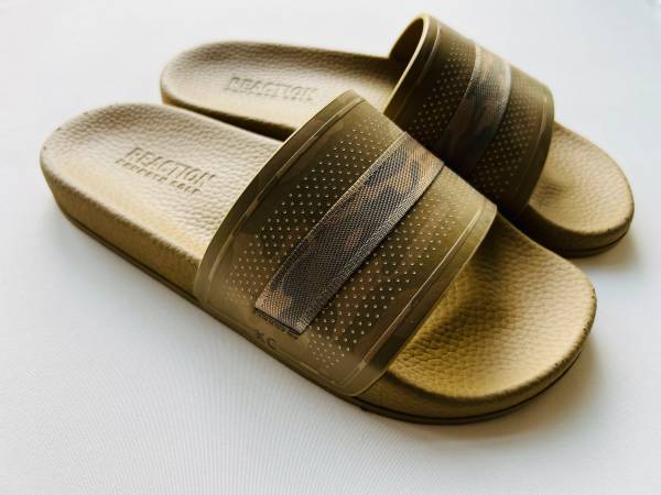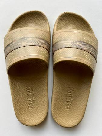 Brand new, never worn. Kenneth Cole Reaction screen mixed slide sandals in desert camo, with contoured footbed and flexible, neoprene rubber. Gender-neutral style, US men’s size 7/women’s size...