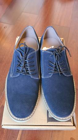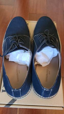 I wore this literally one time at a wedding and has been in the box since. Need to find a new owner who will use it more. Banana Republic men Oxford shoes Size 10 Dark navy color Suede upper Genuine...