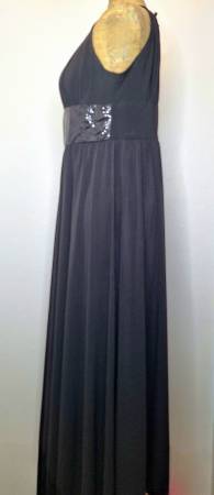 Evening glamour has never been so simple with this maxi dress with sequin embellishments and a high halter style neckline. The empire waistline flatters all body types by cinching the body just below the bust before falling freely, down to the ankle. The high neckline is given a little flair with a keyhole cutout and gentle ruching. The back mirrors the front with a keyhole cutout and a tie closure. The wide band below the bust is embellished with sparkly sequins, catching the light and serving true Hollywood glamour.