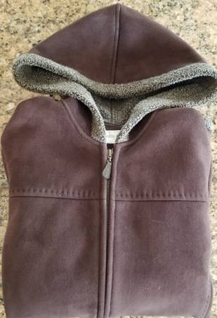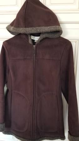 Jones New York Suede Jacket, womens Petite Small, nice rich chocolate brown suede leather with warm fleece lining, in like new condition. It is super comfortable and warm and stylish. Cost $120 new.