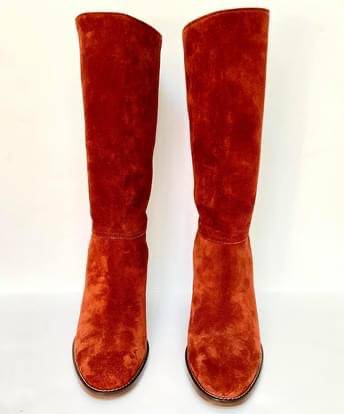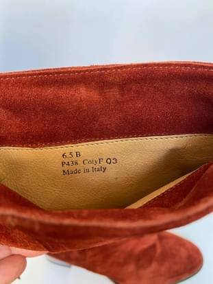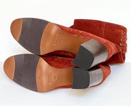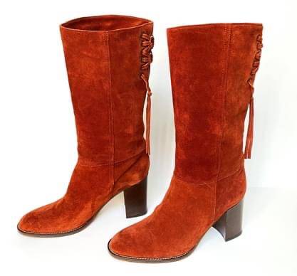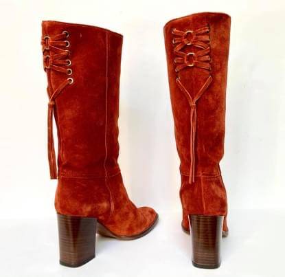 Brand New, never worn, stunning pair of authentic COACH COTY P438 Leather Suede High Heels Boots with Rear Laces. The color is Rust/Brunt Orange Terracotta Women’s Size 6.5B, retailed for $375 + tax.