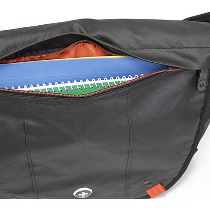 This Swissdigital Jumper laptop Messenger Bag features patented Touch technology, which allows you to connect seamlessly to your smartphone via Bluetooth to answer phone calls, control your music, map navigation, charge your phone and plug in your headphones.