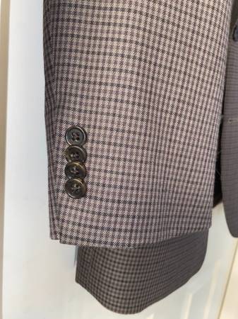 Like new, worn lightly only a couple of times. Polyester and rayon blend, in a stylish fine checkerboard print