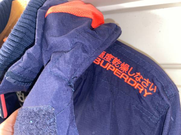 The Superdry Professional Navy Blue Hooded Windcheater Jacket in size M is a premium quality jacket perfect for travel and casual occasions. Made from durable nylon with a cozy polyester lining, this short-length jacket features multiple zip closures, hood, and multiple pockets for convenience. Jacket includes subtle logo accents and exudes a designer theme, making it a stylish and practical choice for autumn, summer, and spring seasons. Perfect for women looking for a reliable and fashionable windbreaker.