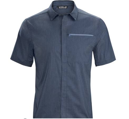 Like new Arc'teryx Kaslo Shirt, Navy blue with Snapped Buttons, Short Sleeve, Poly Cotton Stretch
