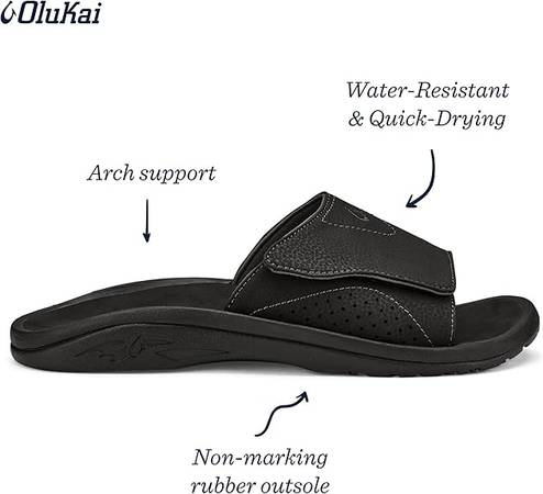 Barely used Olukai Nalu Slide Sandals in Men's size US 12, Water Friendly, super comfortable and adjustable top strap to fit all types of feet.