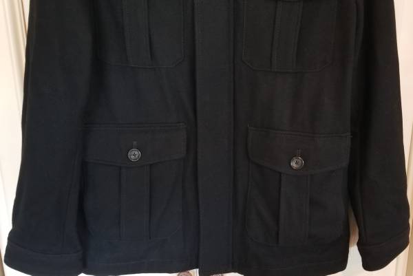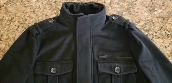 Very stylish Men's Large Express Wool blend French English military Peacoat style jacket, like new.