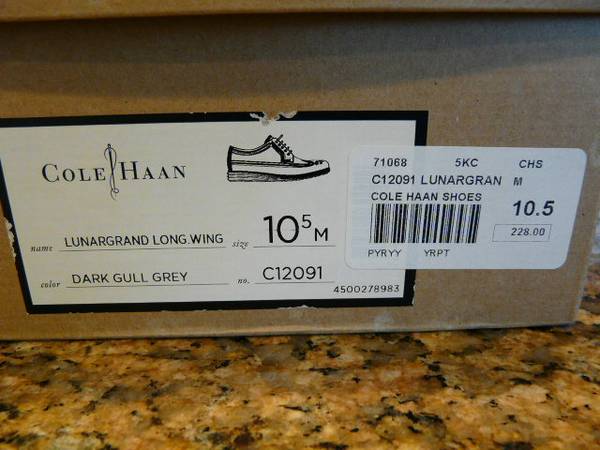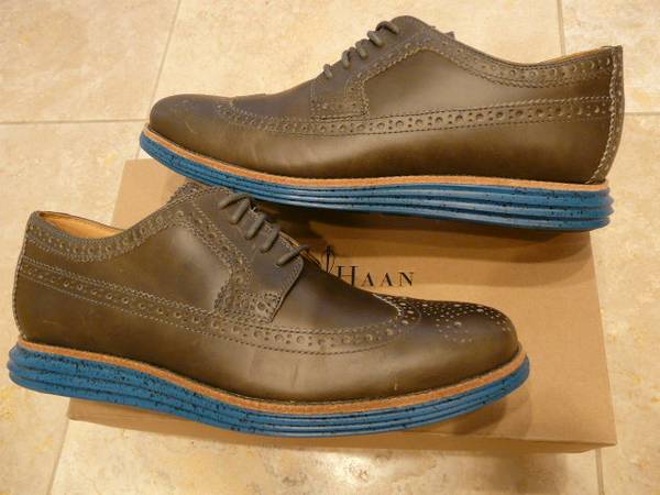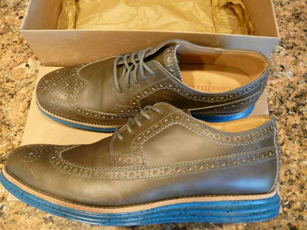 Great Gift! Like new Cole Haan Men's Lunar Grand Long Wing Oxford, in Dark Gull Grey with blue Nike outsole.