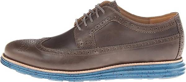 Returning with an all new colour way to suave up your spring attire, Cole Haan delivers the traditional Long Wingtip in Dark Gull Grey. Equipped with the juxtaposed Nike Lunarlon outsole, the dark premium leather upper is a radical contrast to the royal blue outsole, which also features a prominent complementary black speckling.