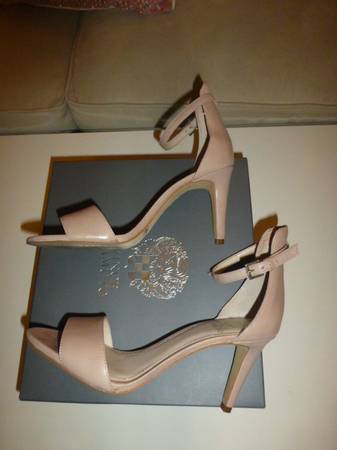 Vince Camuto Nappa Leather Court Ankle Strap Sandal Heel in sandbar. In good condition, Only worn a few times. Size 8. From Nordstrom.