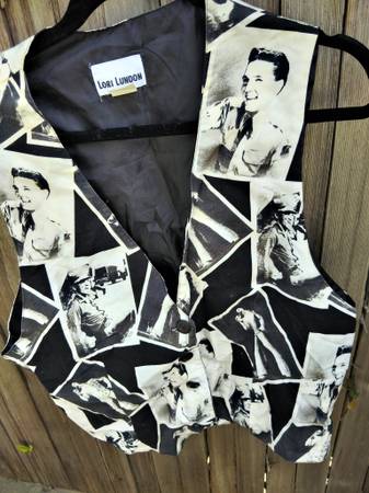 Elvis Presley Vest Color: Black and White Size: large Vintage Unisex Vest with photos of Elvis Presley, Rock & Pop Artist Manufactured: Lori Lundon Welcome Collectors own a piece of History...
