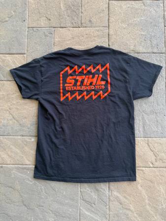 Vintage Stihl Chainsaws T Shirt Size L Firefighting Rare Black/Orange German