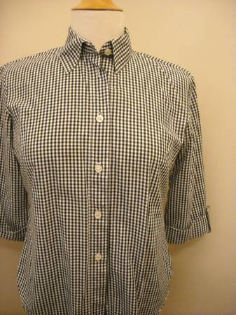 Harve' Benard, 3/4 Sleeve, Black Gingham Blouse - $12