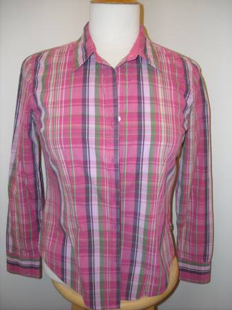 IZOD, Pink Plaid Long Sleeve Blouse - $9