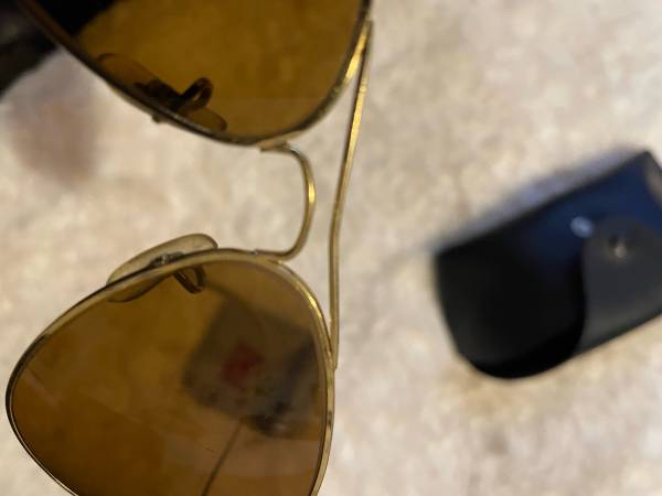 * These sunglasses are in pretty good condition considering their age! One scratch that I see when I clean them but do not notice when wearing them. You can decide for yourself! Glasses are Ray-Ban with a Ray-Ban black case and a Ray-Ban cleaning cloth along with Bausch and Lome lenses.
