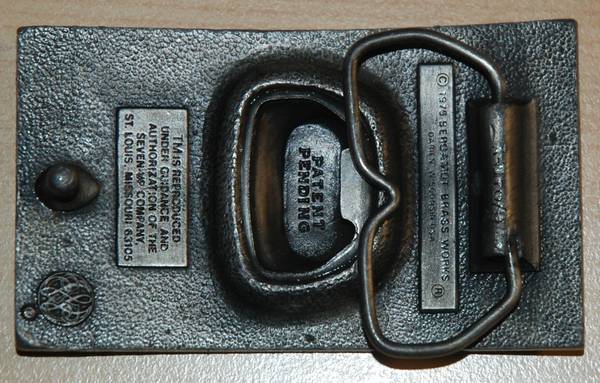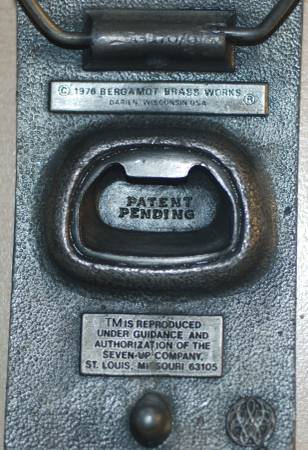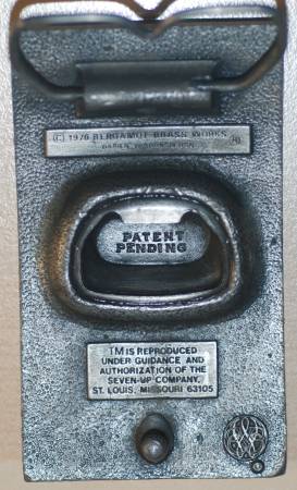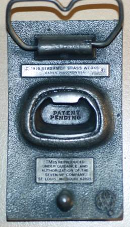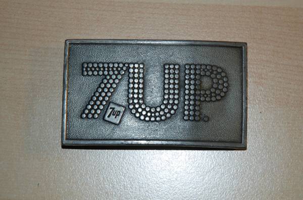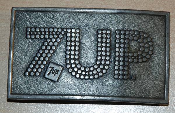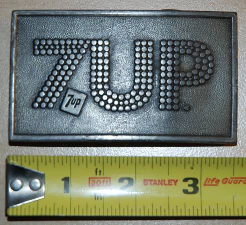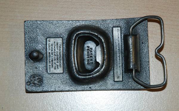 RB05163 VINTAGE 1978 **7-UP** SODA FOUNTAIN ADVERTISEMENT (BOTTLE OPENER) BUCKLE In working condition 3.5"x 2"