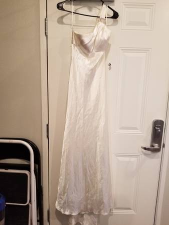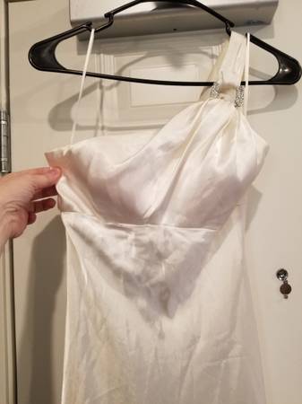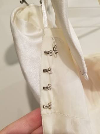 size 3/4. Lenth from the shoulder strap to the front of the dress is approximately 63 inches. The back is about 4 inches longer than the front. One of the hooks came loose so it needs to be...
