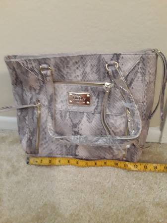 Dusty Lilac purse for $22 firm, measures approximately 10 1/2" tall by 14" wide.
