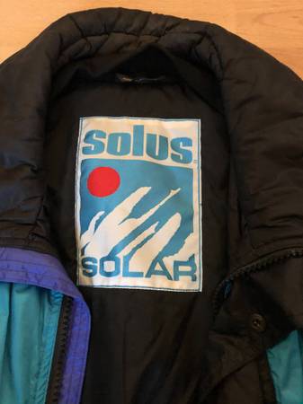 Solus Solar Snow Ski Men's Jacket Size M, Ski/Snow Coat is black blue color, pocket zippers, 100% Nylon