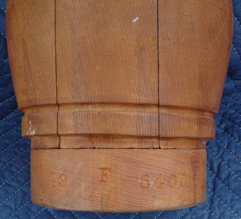 Engraved and written numbers '23 F 6400' appear on the block. Solid wood with 4 pieces that interlock onto the center base.