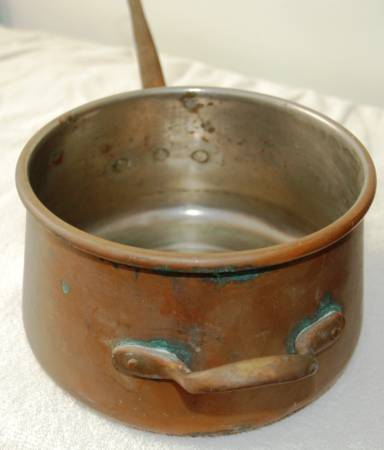 2 Vintage Copper Sauce Pans with Spoon