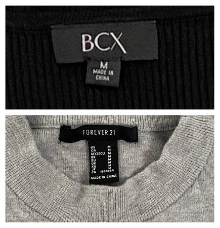 This is a very nice lot of 2 women’s sweater dresses Includes: 1. BCX black long sleeve ribbed sweater dress with faux leather trimmed front pockets 2. Forever 21 gray long sleeved ribbed sweater...