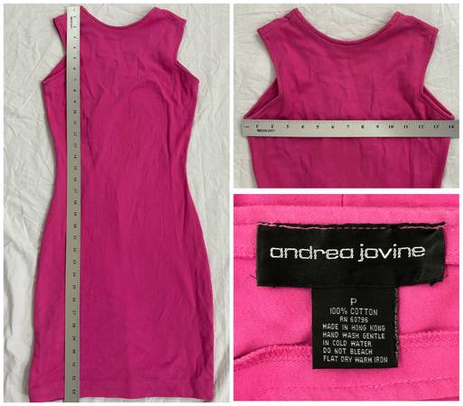Women’s 90’s vintage Andrea Jovine sleeveless pink knit dress with diamond keyhole back Size small petite hot pink jersey knit bodycon / pencil dress diamond cutout keyhole in back - size XS Stylish...