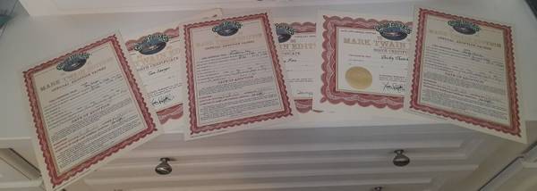 All meticulously hand stitched and hand painted in the USA. The clothes are authentically detailed and are reminiscent of the 1840's river town that was immortalized by Mark Twain. The complete set of Mark Twain Edition will continue to grow more valuable with each passing year.