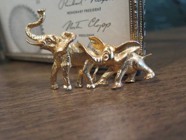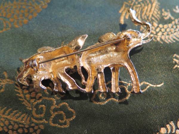 Good Quality Vintage Arthur Pepper Signed ART Mother and Baby Pachyderms or elephants - Animal Brooch Pin Large