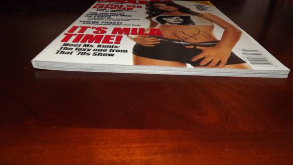 That 70's Show Memorabilia - very rare and one of a kind. I have a signed script from That 70's Show episode #508 "Thank You" final draft October 10,2002. Cast members in the show are, Topher Grace, Mila Kunis, Ashton Kutcher, Danny Masterson, Luara Prepon, Wilmer Valderrama, Debra Jo Rupp, Kurtwood Smith, Don Stark.I have a signed Stuff Magazine for Men January 2001 with Mila Kunis on the cover. I used to go see live taping of the show on Friday evenings. Lots of fun seeing it live. There was elevated bleacher bench type of seating for the audience and the sets were in front and down below the stands. There would be an entertainer to engage with the audience during the taping. They would pass out a few copies of the script for the episode. This night I was in the front row a I was one of the people to receive a script. After the taping was over the actors would stay after and engage and sign autographs. The stars were aligned for me I guess that evening as I had brought my Stuff Mag hoping to get it signed and I did, plus a script as well. These are in mint condition. Never read either one. I meant them as a collector piece. I also have a glass framed Poster that is very rare as I have not even seen another of this one. It reads manufactured and distributed by Glow Industries #4277 "That 70's Show" 1999 The Casey-Werner Company.