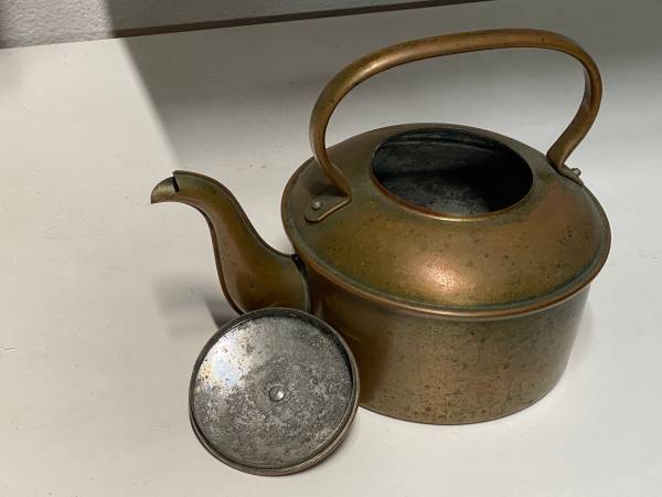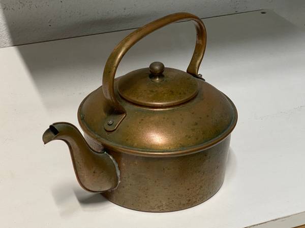Vintage Copper Kettle, made in France stamp on bottom, 7 1/2 " diameter x8 1/2" tall. Photos are the item for sale, have had it for 40 to 50 years. Magnet does not stick to kettle - must be solid copper.If you see the post its still available. $45.00 - Please call for information sevenonefour642sixeithtsixeight