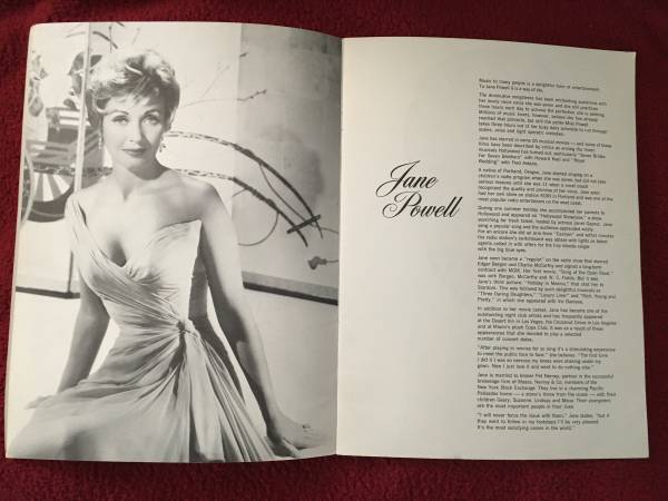 Two theatre programs from the 1960's. September 21, 1962 Souvenir Theater Program - "The Wonderful World of Music" starring Jane Powell and Vic Damone with Stan Kenton Orchestra with special guest composer Jimmy (Jim) McHugh, produced and staged by James Fitzgerald & associate producer Mike Mamakos, C.A.F. Enterprises Inc. Hollywood California. The programme is in excellent condition aside from the dated note on the cover. I have also copied a Newsprint from Independent Star News that was dated August 26, 1962, that had an ad posted. There are 16 pages if you include the back of the covers. 1965 Pickwick Theater Program with future Monkees band member, Davey Jones.