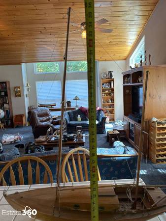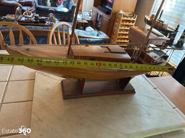 Vintage Wooden Model Sailboat, 17" Length x 28" Height x 9" beam/Width - $399. OBO