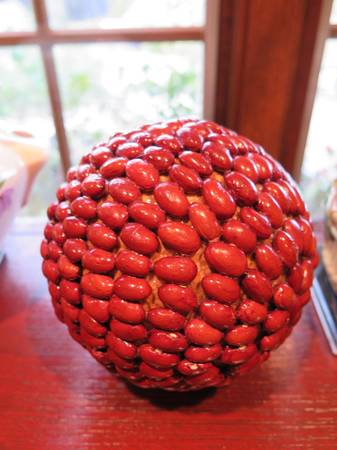 #3 - Red large sphere - hand crafted made of large red beans - great decor
