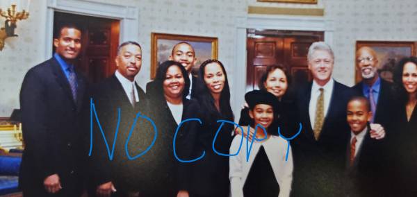 Rare photo of Civil Rights activist Terrence James Roberts and family with President Bill Clinton at the Little Rock Nine Medal Ceremony November 9, 1999, at The White House.